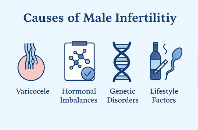Male infertility can result from a variety of medical, environmental and lifestyle factors. Some common causes include: